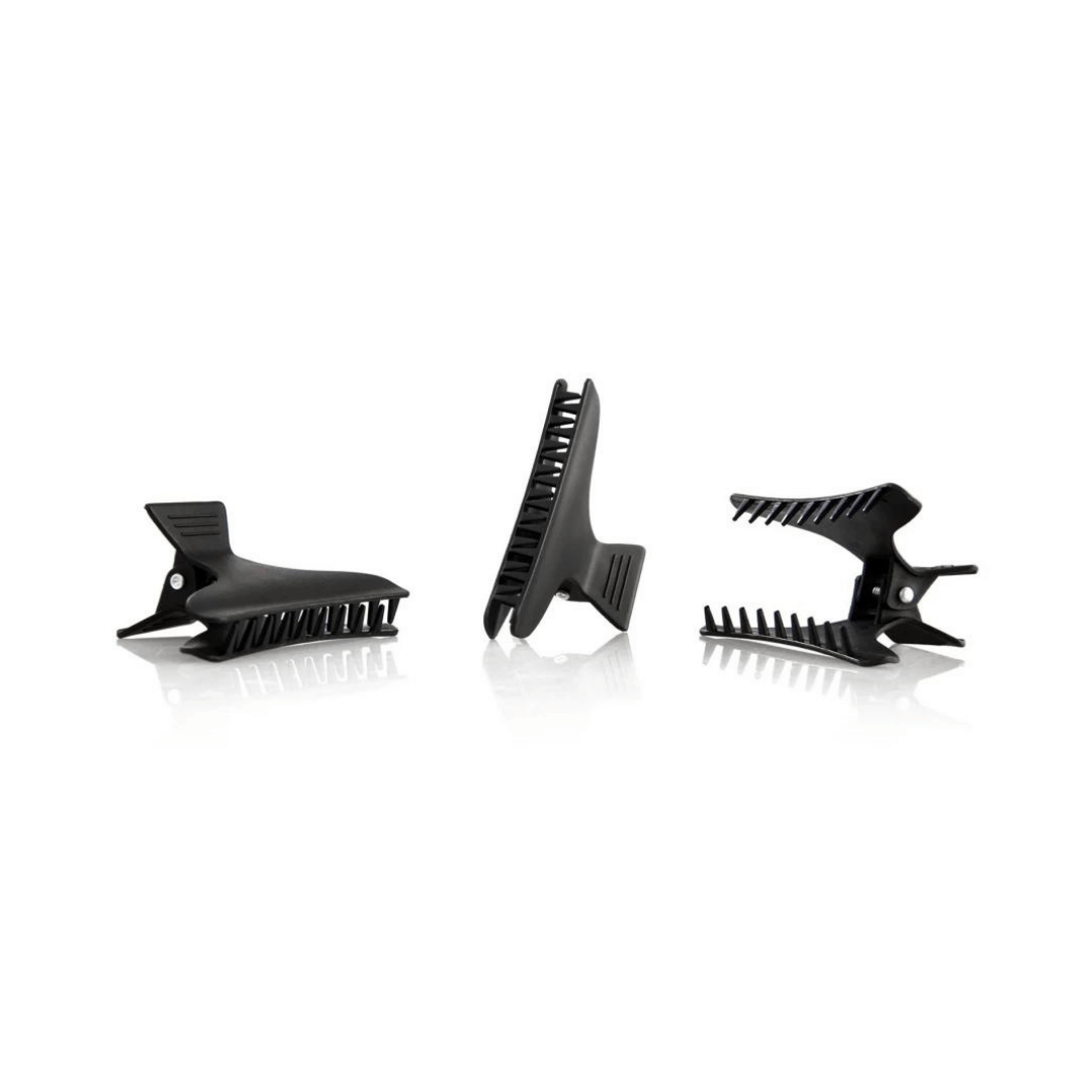 Le pinze in plastica satinata nera di Labor Pro sono l'accessorio perfetto per la divisione e la tenuta dei capelli durante lo styling.