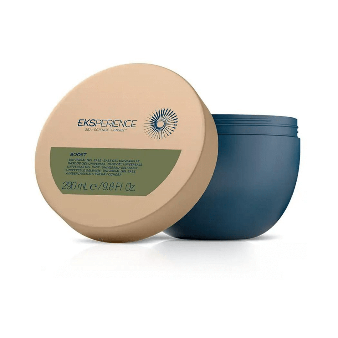 Eksperience Boost Universal Gel Base è un condizionante viscoso trasparente da utilizzare come base per tutti i trattamenti per capelli Boost Eksperience.